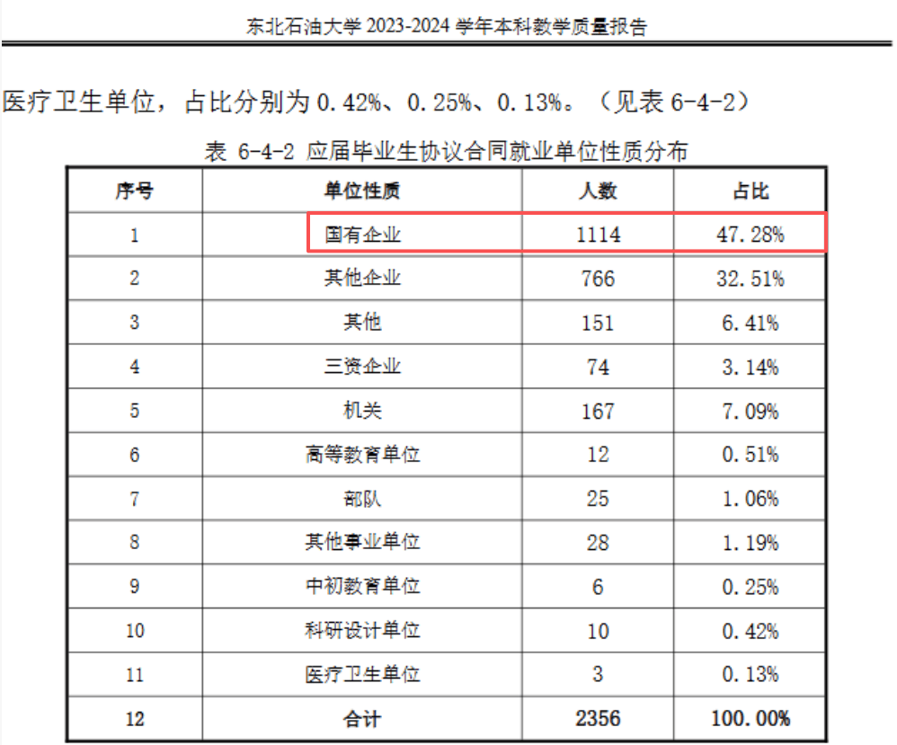 就业方面,2024届结业生有47。28%都能进入国有企业就业!上千人进入三桶油工做,结业就是铁饭碗。