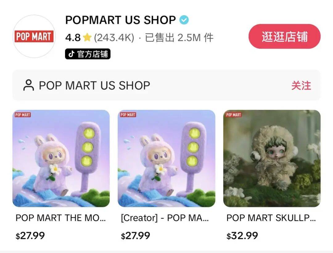 当用户正在TikTok刷到LABUBU的曲播或视频,点击内嵌的TikTok Shop商品链接即可间接下单。正在TikTok搜刮泡泡玛特(POPMART),屏幕最上方能看到,泡泡玛特TikTok Shop美区的发卖量已跨越250万件。