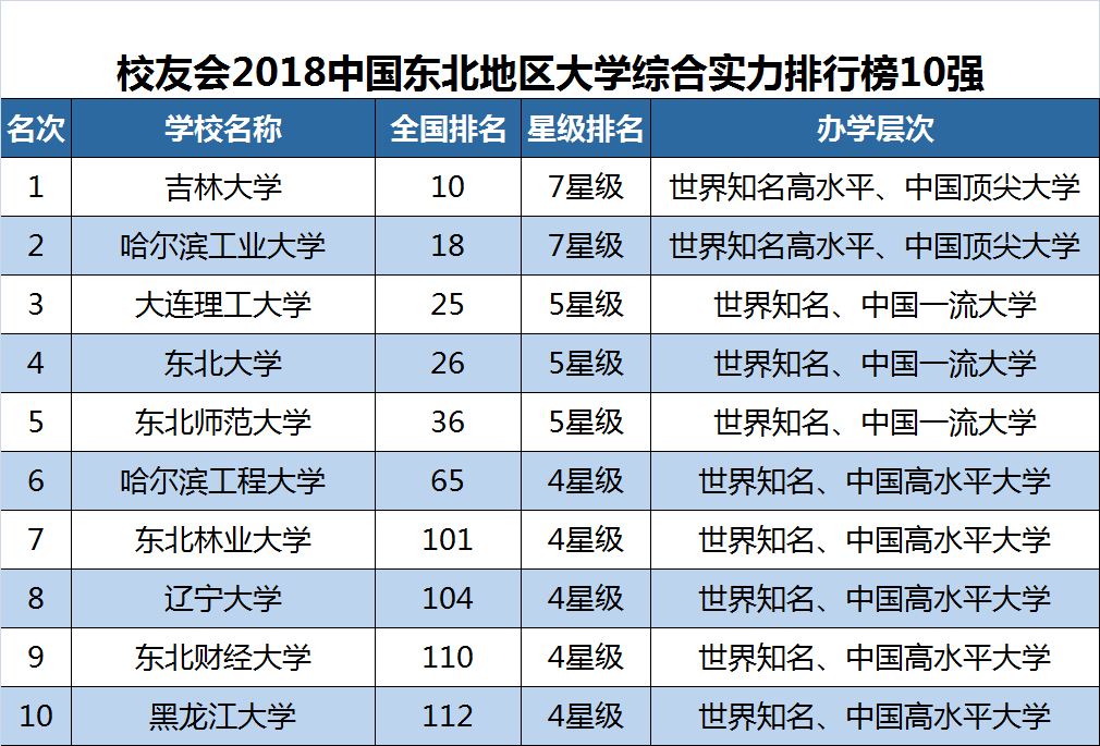 2018中国东北地域大学分析实力排行榜TOP100哈尔冰